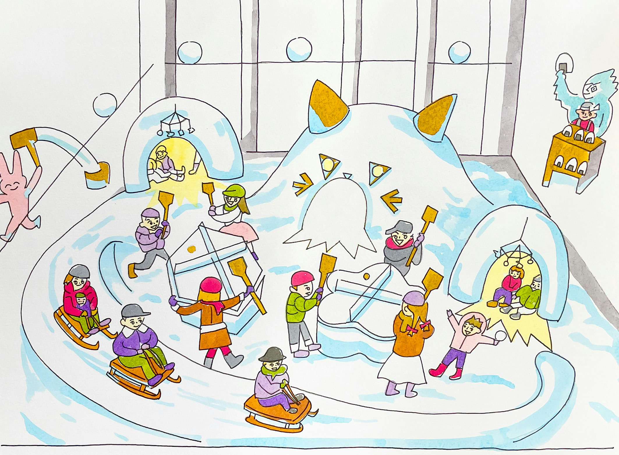 まつだい「農舞台」フィールドミュージアムの「企画展『手をたずさえる塔』と雪あそび博覧会」(~3月6日)では、2021年12月に完成したばかりの、イリヤ&エミリア・カバコフの新作《手をたずさえる塔》を雪景色のなか公開。また、降り積もった雪を楽しむそり遊びやかまくら体験、餅焼き体験など、里山をフィールドにアートと食と農を堪能できる。