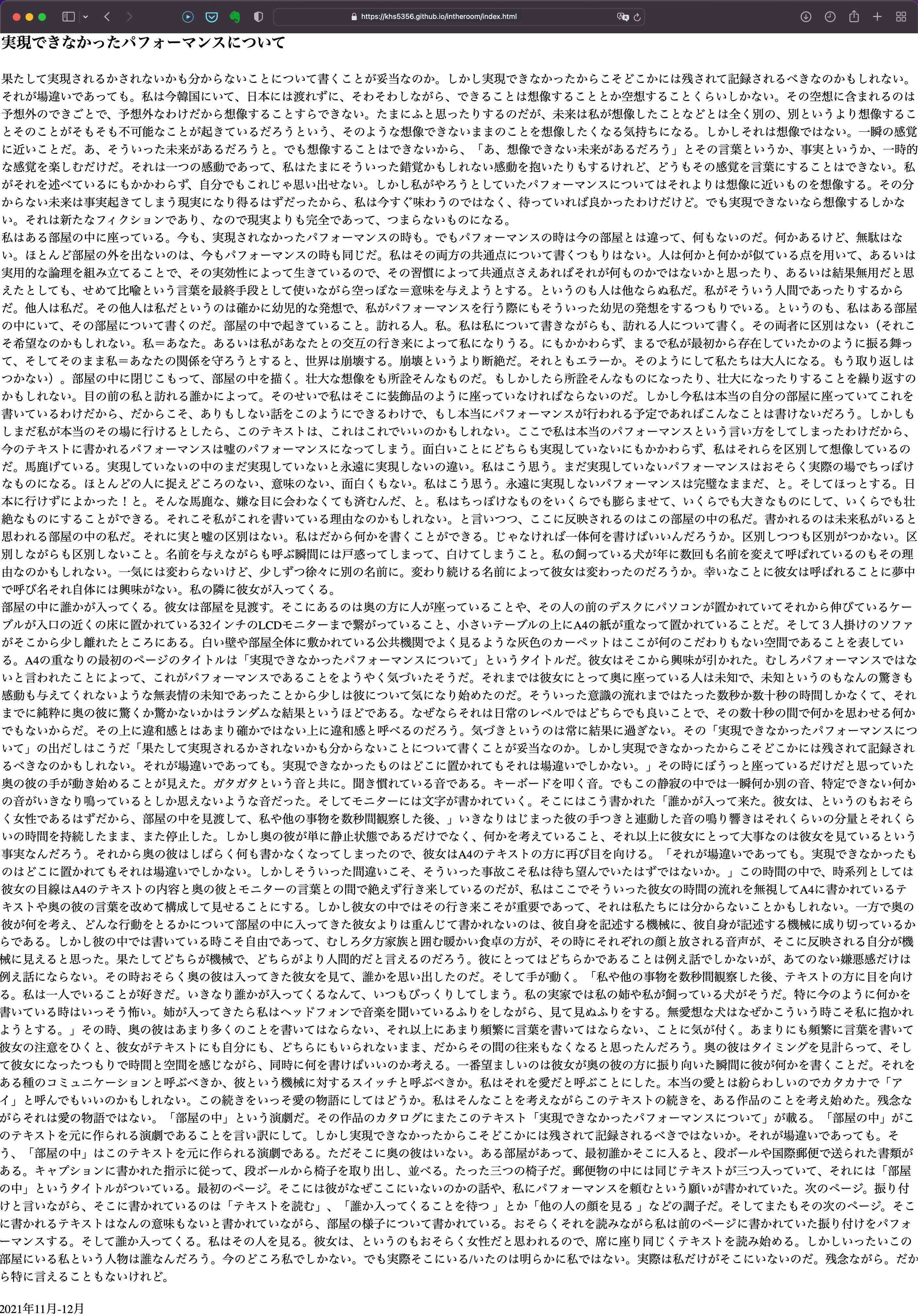 東京藝術大学大学院映像研究科メディア映像専攻15期生・16期生による「MEDIA PRACTICE 21-22」が開催される。本専攻修士2年生はこれから各自のフィールドで活動していく始まりの「修了制作展」として、修士1年生は自らのテーマや問題意識のもとで取り組み始めた作品の「成果発表会」として、両学年が年次成果を併せて発表する展覧会。