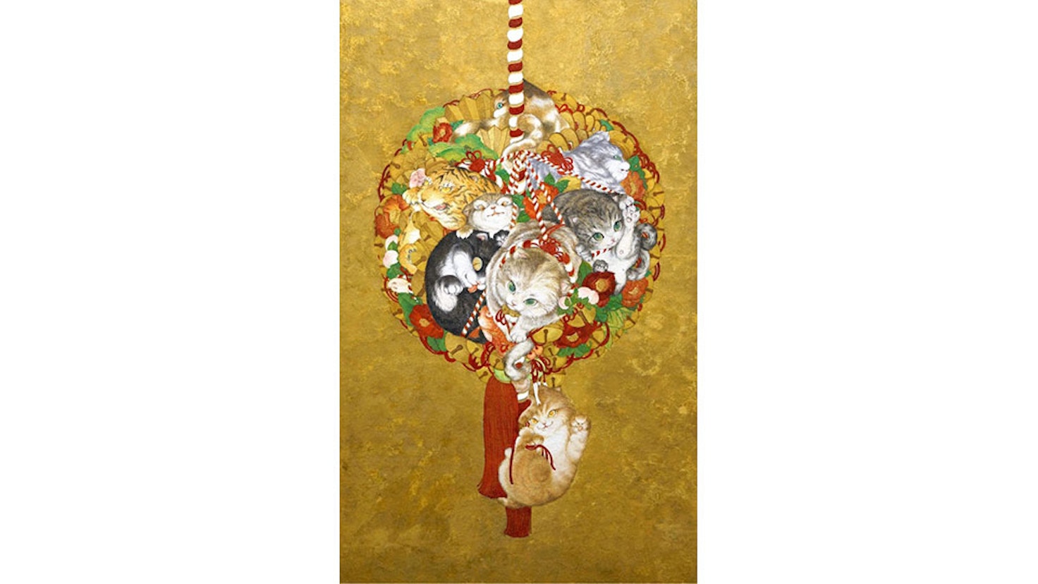 「将軍令」と題した本展では、古来の寓話を創造の源泉とした日本画と陶磁器の秀作およそ20点を一堂に展覧する。武士が魍魎と勇猛に戦う《猫将軍の邪気払い合戦図》、桃太郎が仲間と力を合わせ混乱をおさめる《桃大将香炉》などの作品は、日々の私たちの心の葛藤や、困難に立ち向かう姿とも重なり、王の作品を見る者はその美しさの奥に内包されるメッセージにも共感を抱き、勇気をもらえることだろう。