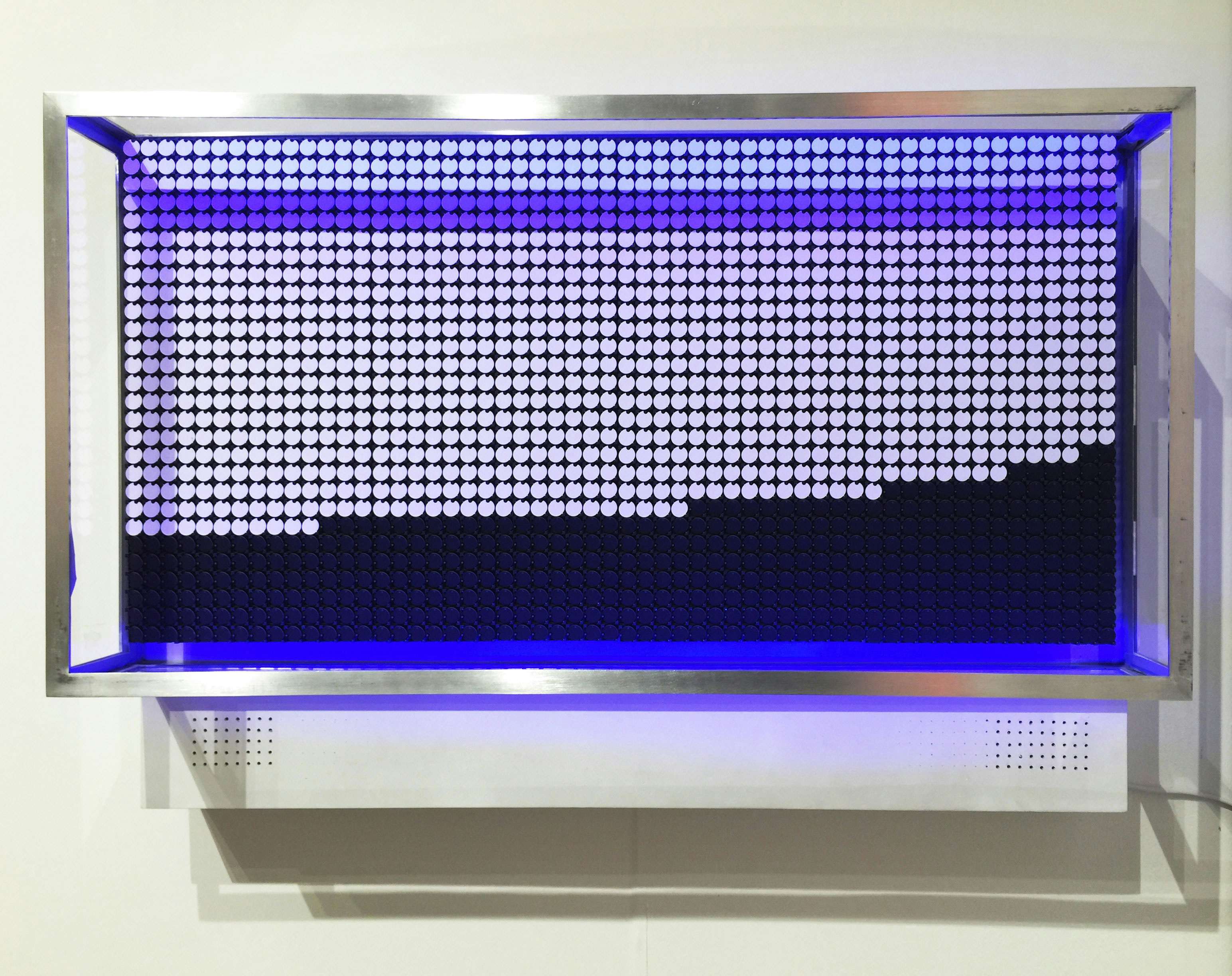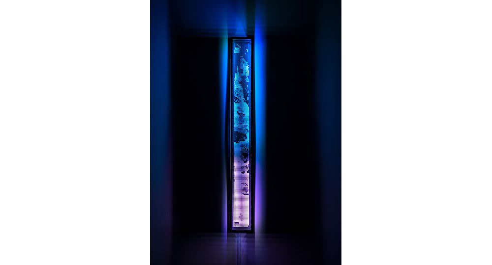 滝や波、雨、風という自然現象のなかにある一定のリズムや動きのパターンをデータ化し、作品へと昇華させるGil。その作品は、私たち鑑賞者の視覚と聴覚に不思議な「心地よさ」をもたらしてくれる。