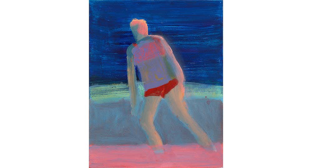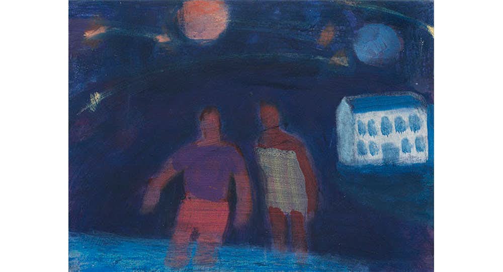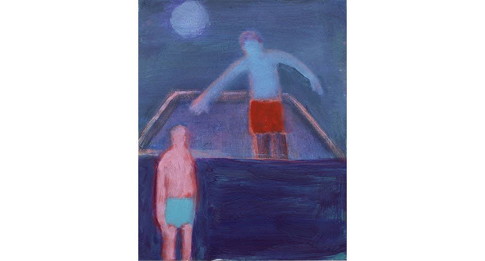 「今回の新作は、水の中にいる人物への、私の探求が続いたものとなっています。私が夜泳ぐ人に興味を持つのは、光と影の中でかすかに変わったり、いかにその色の世界がそれぞれの状況で現れているかということです。私はいくつかのペインティングで、月の輝きを描き込んでいます。高い席の上で見守るライフガードが、私たちにとって必要なのと同じように。
