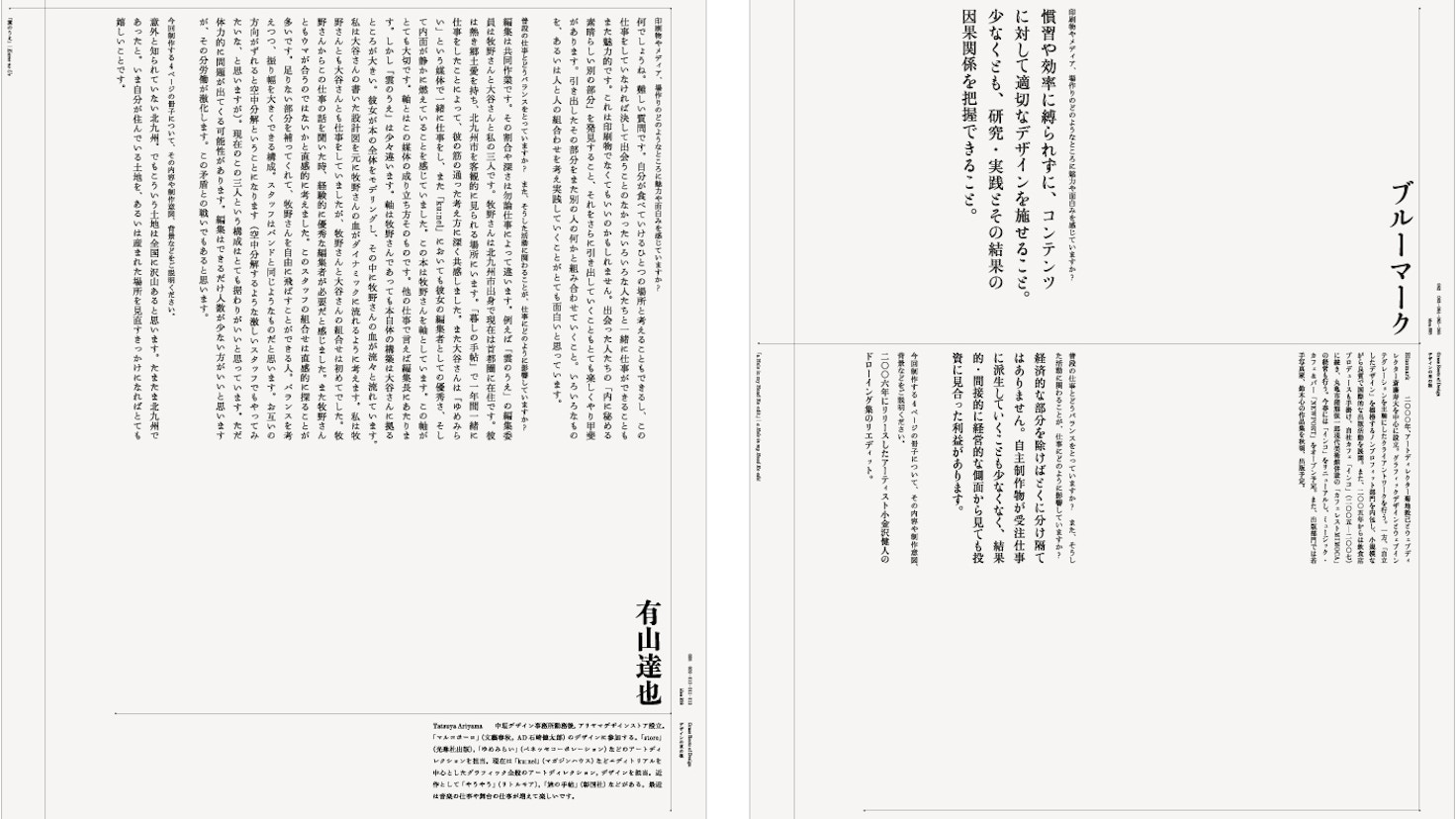タイポグラフィというデザイン要素の中でも、「紙面に文字組版を配置・構成した空間を含む造形」である「組版造形」。本展では、美しい装丁を展示すると同時に、墨文字1色の見開きページがずらりと並ぶ異色の展覧会となる。