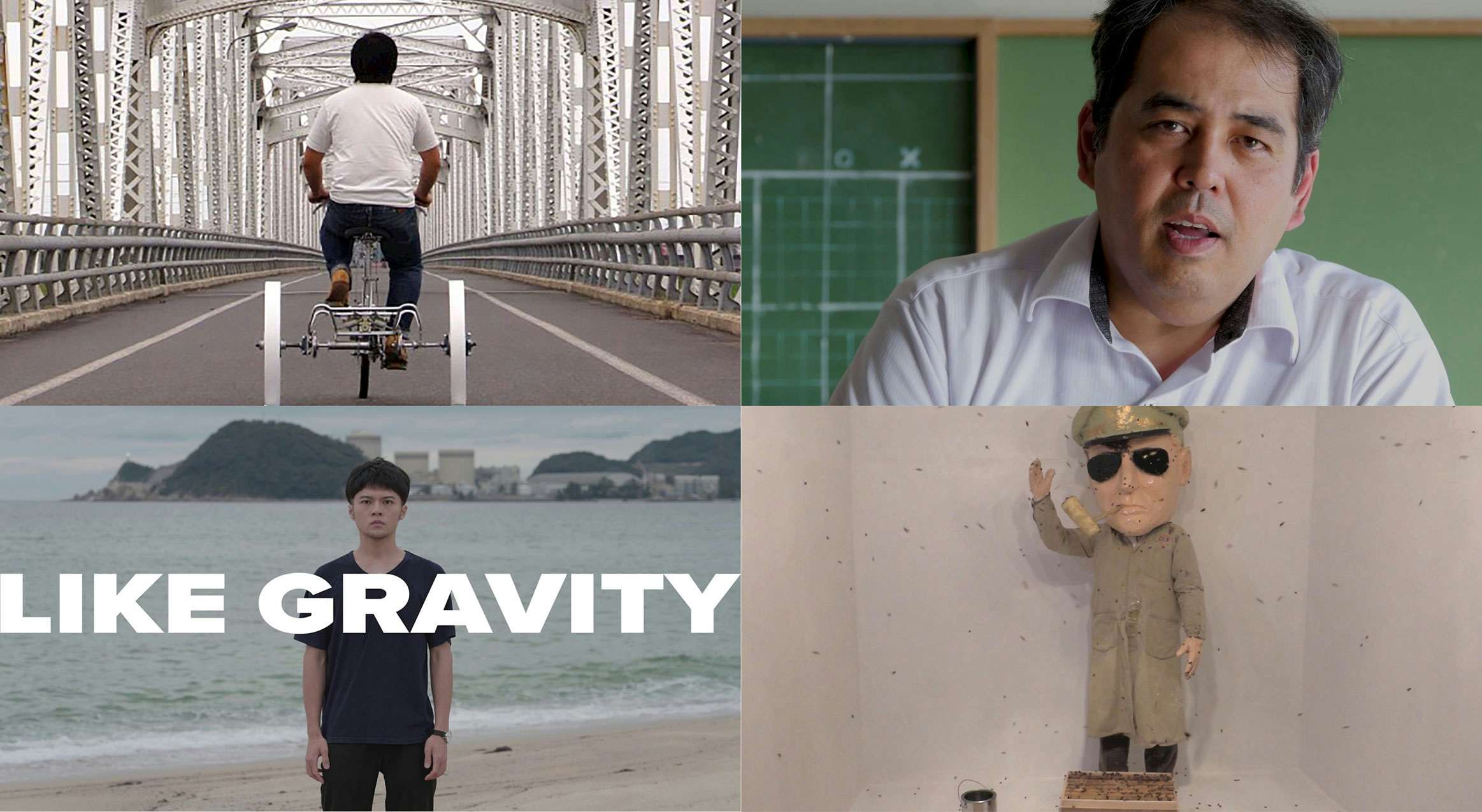 井⽥の作品は「労働と資源(エネルギー)」を、渡邊の作品は「偏⾒と思い込み」をキーワードに制作され、4作品が相互に⼲渉することで円環が⽣じ、鑑賞者は「虚」と「実」の「間(あわい)」を体験することとなる。そしてその「虚」と「実」の「間(あわい)」に、⾃⼰の内部における⾃他の関係と、⾃⼰の外部に広がる現実世界における⾃他の関係という、2つ以上の極端な存在が類⽐的にとらえられることを期待する。