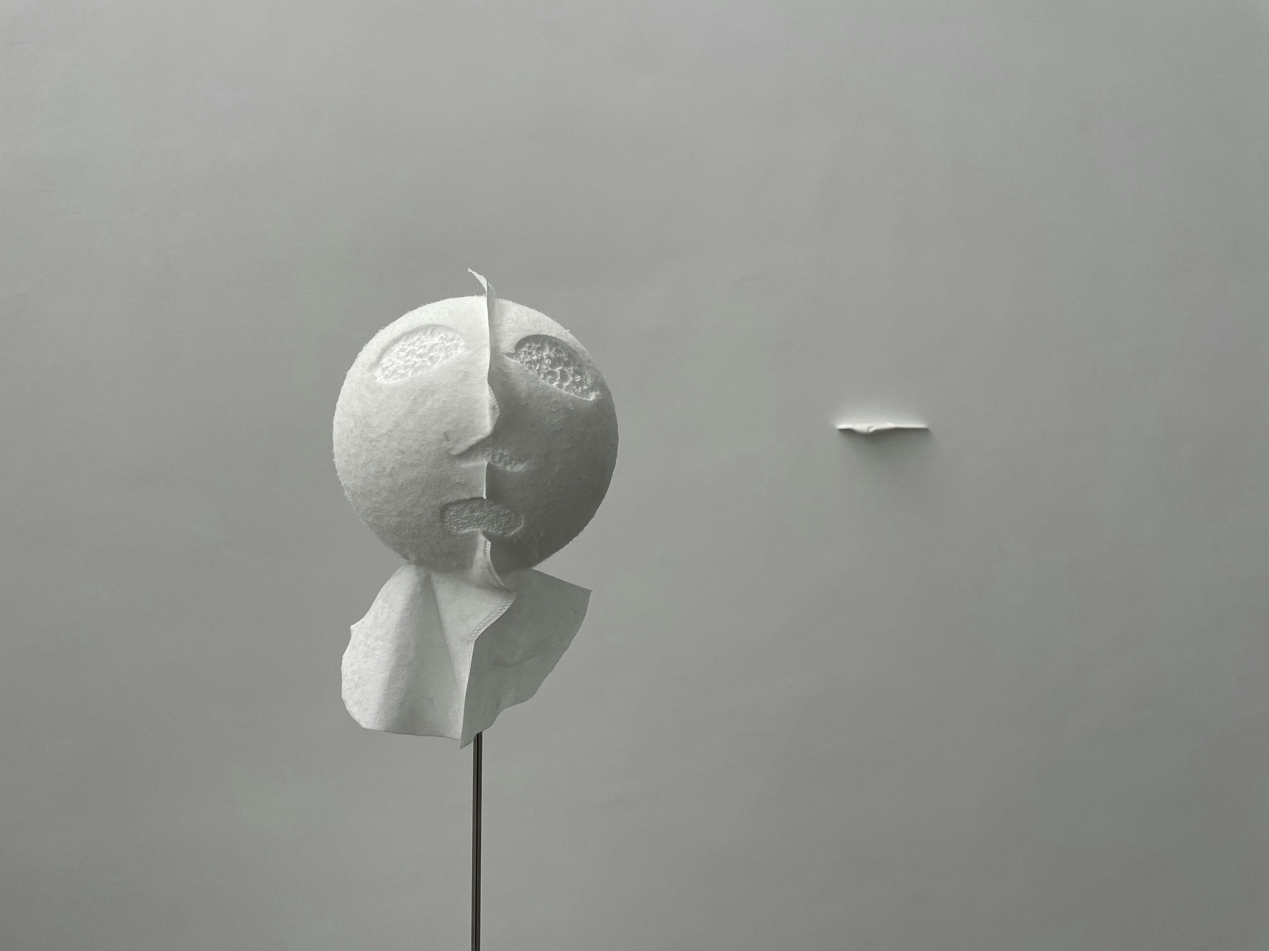 「頭像について」と題された本展では、岡崎の2021年、2022年の新作を中心に、頭像、仮面、マスクにまつわる作品が展示される。