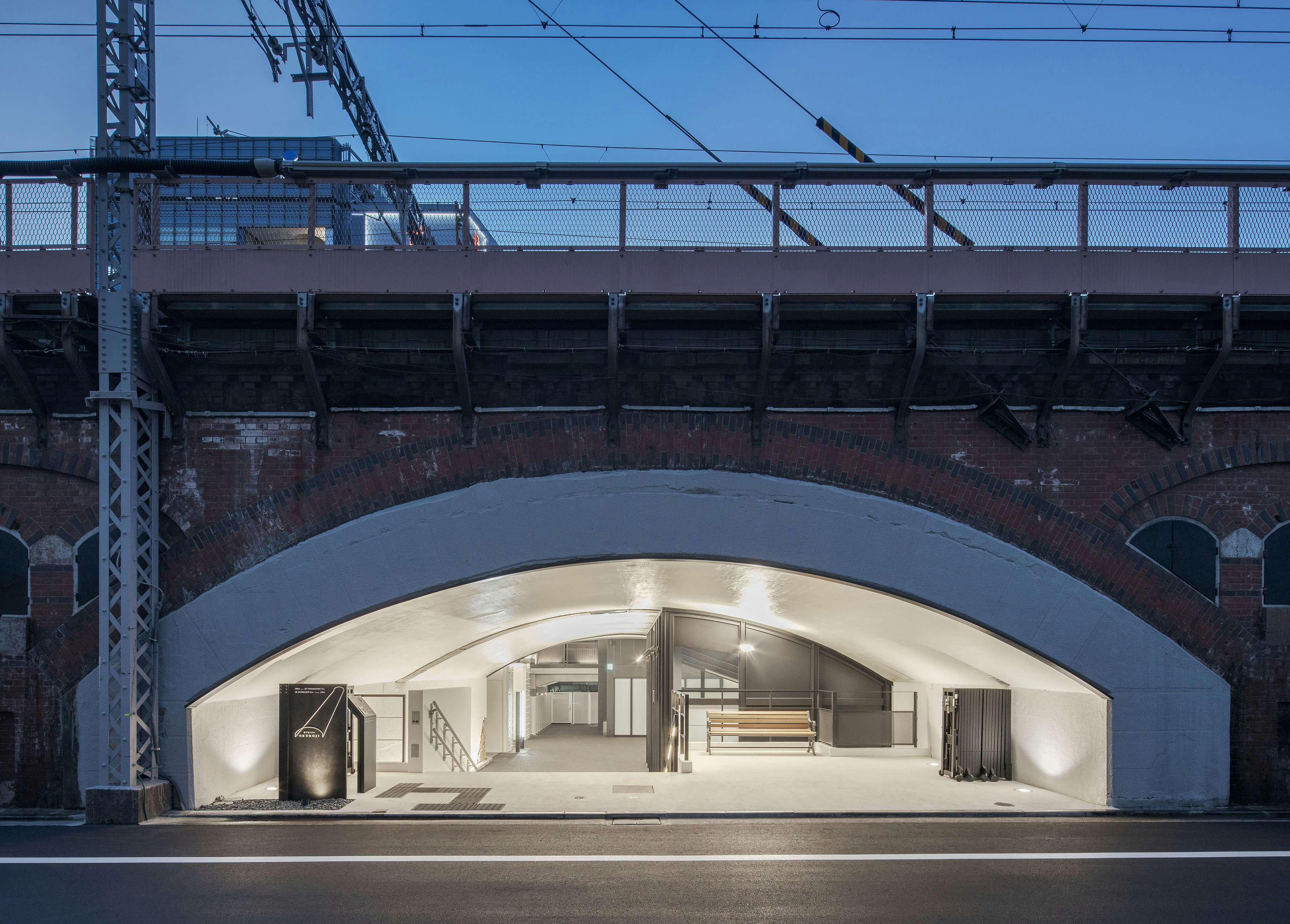 JR東日本(山手線、京浜東北線、東海道本線)と、JR東海(新幹線)が通る鉄道高架橋の下を300メートルにわたる施設は、1910年(明治43)年にベルリンの高架橋をモデルにドイツ人技師の指導のもと建設されたもので、象徴的な煉瓦アーチは現在も高架橋としても日々鉄道の運行を支えている。