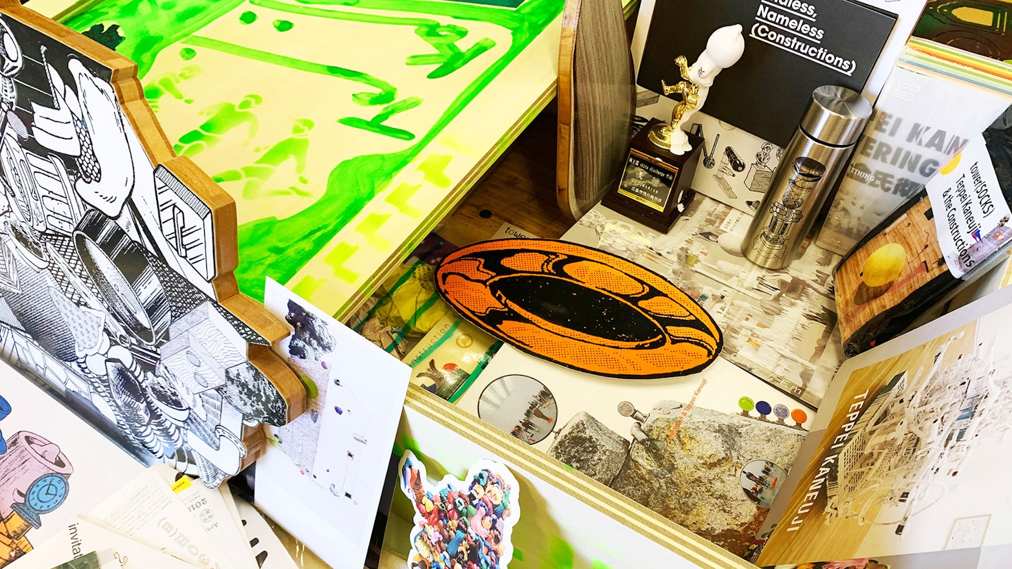 美術家、彫刻家・金氏徹平の活動20周年を記念した展示「Fluorescent Green Boxと未発表、未完成作品」がNADiff a/p/a/r/tで開催される。