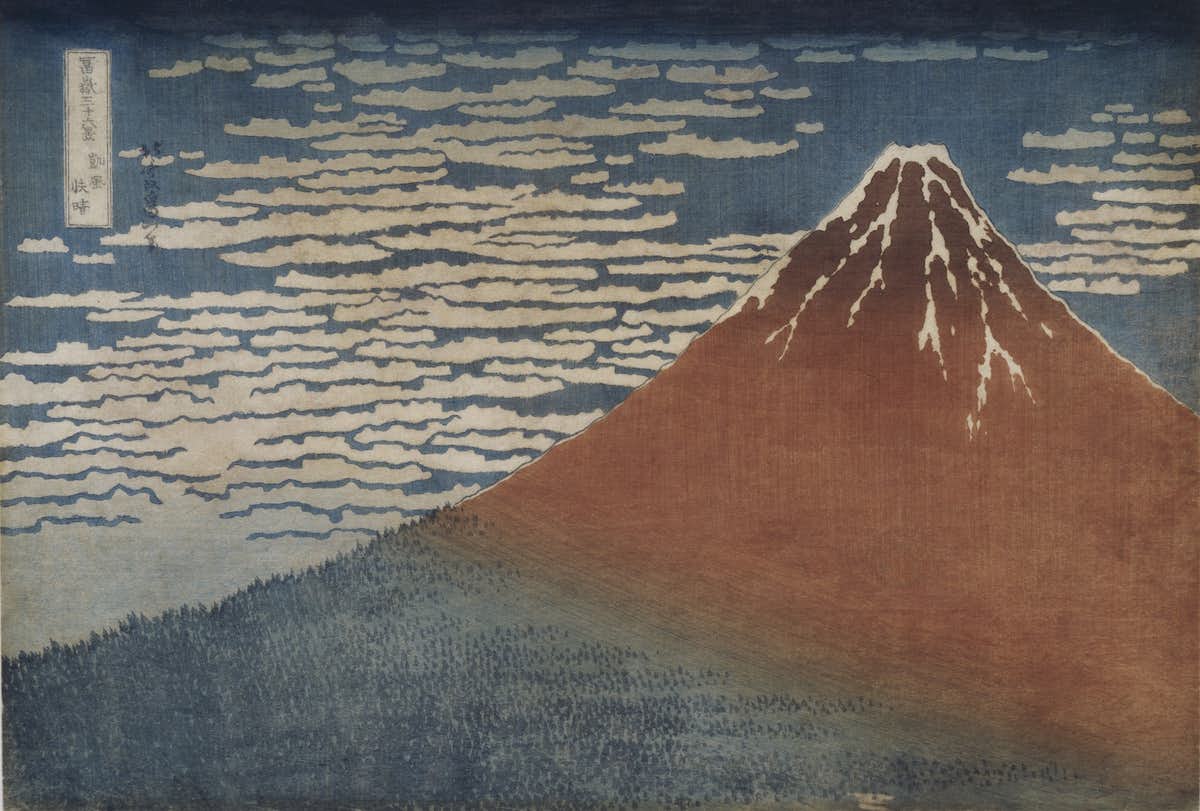 本展では、画家が個人的に厄除けのために描いたという資料としても貴重な《日新除魔図》とともに、制作年代が近い版画シリーズ「冨嶽三十六景(ふがくさんじゅうろっけい)」や肉筆画「東町祭屋台天井絵(ひがしまちまつりやたいてんじょうえ)」などの代表作も並ぶ。