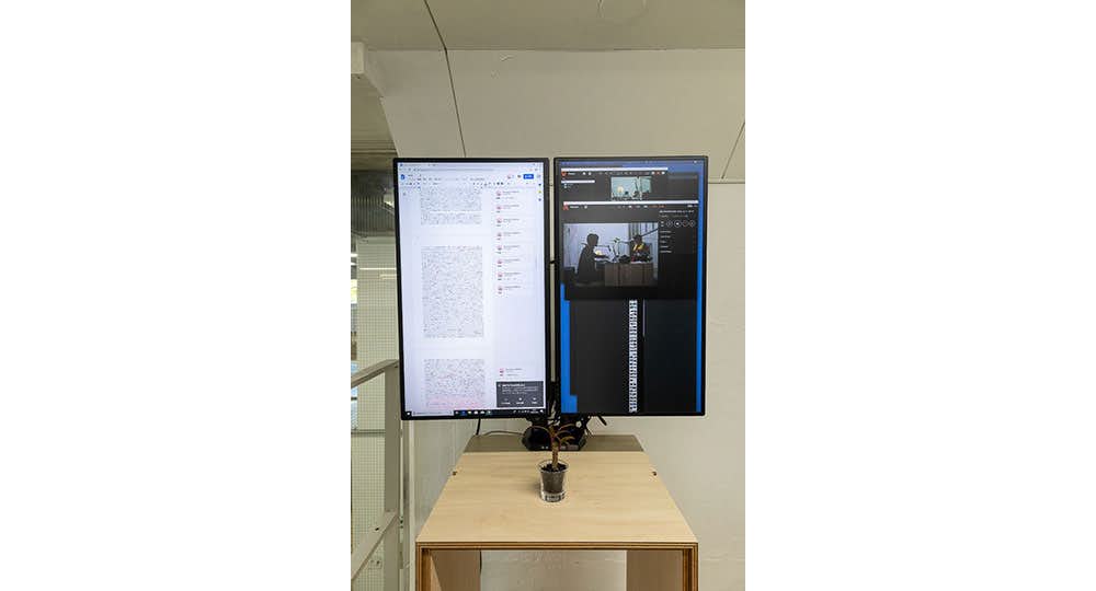 本展で久保田は、ギャラリー空間に普段置かれているモノ(作品や備品、什器など)を会場の外部へと運び出し、その構成を一変させる。この実践は、通常のギャラリーの機能を阻害する行為であることに加え、その空間としての機能の抽象化でもある。そうすることで久保田は、普段前景化されることのないギャラリーという場の物理的/システム的な裏側を可視化し、空間の最適な環境について再考するために一時的な実験の場をつくり出すことを試みる。