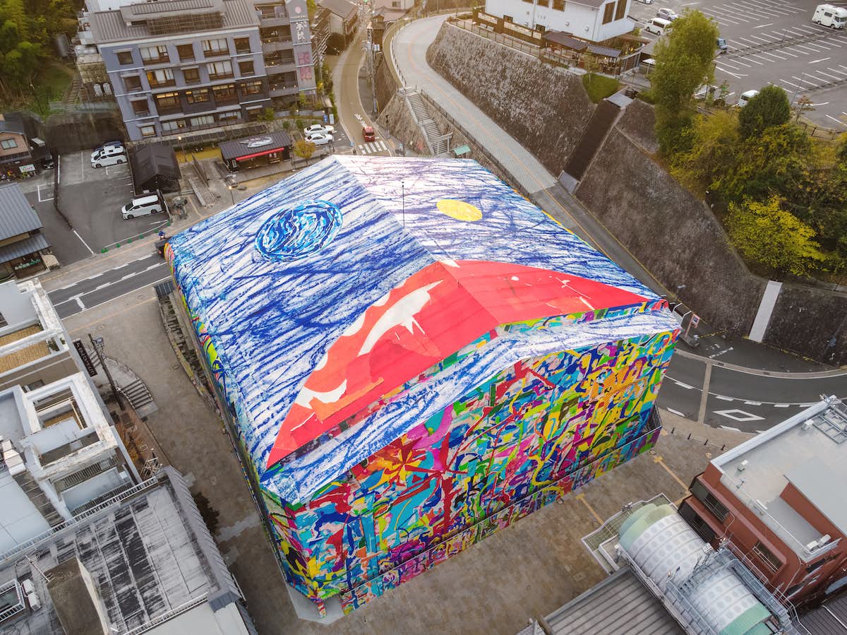 2021年からの先行公開作家は、大竹伸朗、蜷川実花、隅川雄二、尾野光子の4名。現在、保存修理工事が進められている道後温泉本館の素屋根テント膜では、大竹伸朗が手がけた巨大な作品が展示されている。
