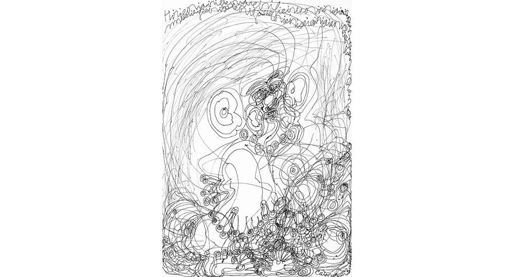 「アール・ブリュット」の作品における線は、しばしば意図や計画とはかけ離れた、即興や偶然の結果とみなされる。反面、それは、作家の抑えがたい衝動や愛着、それに応じた身体の心地よい動きと離れがたく強く結びついている。そのため作家のからだと心のしぐさは線にのりうつり、線はしぐさを生む。