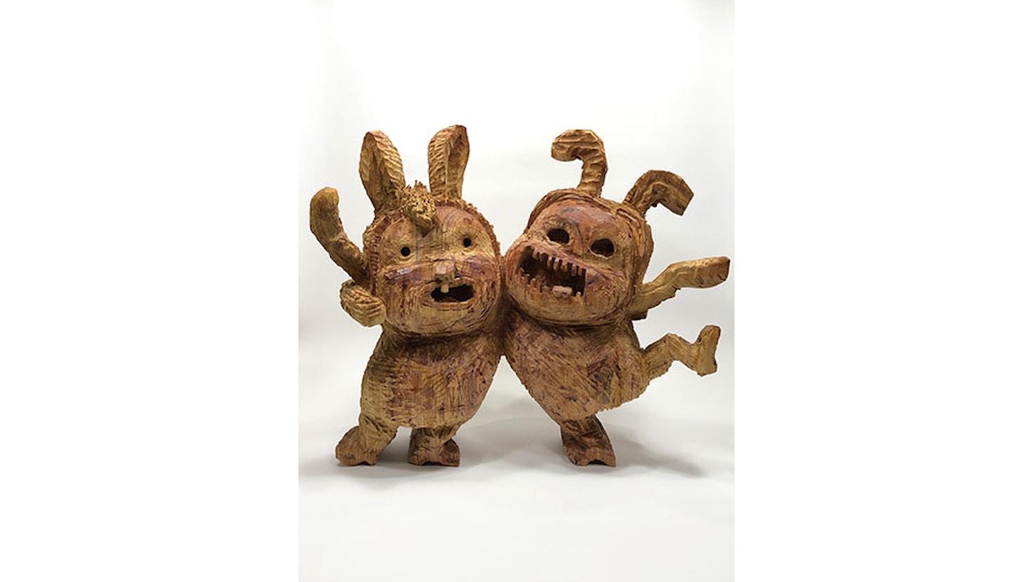 矢部はずっしりとした木材や木片、廃材などを使い様々な表面加工を施し、強烈な存在感を持つモンスターや悪魔、愛らしさと怖さを併せ持つ少女、ユーモラスで不可解な動物たちなどを次々と生み出す。その作品に一貫して込められているのは「人間とは何なのか?」という思いだ。私たちはいったいどんな生き物なのか、矢部の作品にはそんな人間への愛しさがにじんでいる。