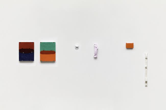 日本では2017年、MISAKO & ROSENと小山登美夫ギャラリーで開催した初個展で大きな反響を呼んだモンテイロ。今回の個展は、色と色の組み合わせについて、明治生まれの洋画家・和田三造の著作『配色辞典ー大正・昭和の色彩ノート』に影響を受けたという。前回展の鮮やかな色遣いに対し、落ち着いたトーンの茶色、赤、オレンジ、ブルー、イエローが印象的な作品群が並ぶ。