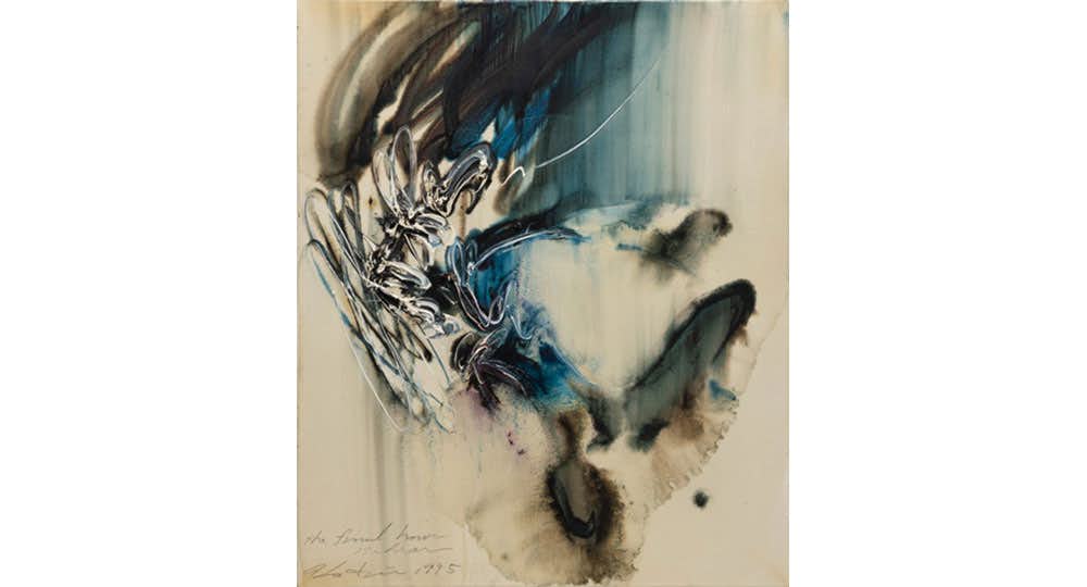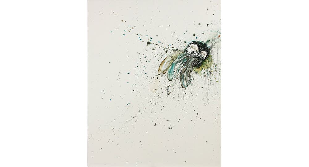 出品作は、1988年に20代で描いた油彩1点、1995年の阪神・淡路大震災でアトリエが甚大な被害を受けたために、あまり作品が残っていない時期にあたる1994年作のドローイング3点と1995年の油彩1点、そして1996年の大作1点の計6点。