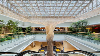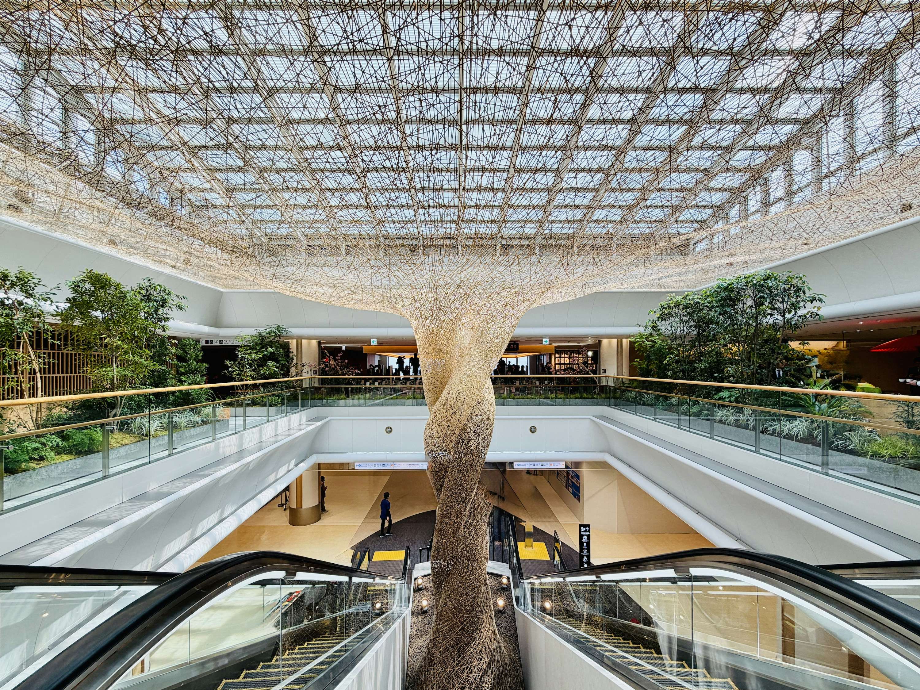 成田国際空港第1ターミナルの5階がリニューアル。四代田辺竹雲斎が手がける巨大作品を中心とする「SHIKISAI GARDEN」がオープンした。