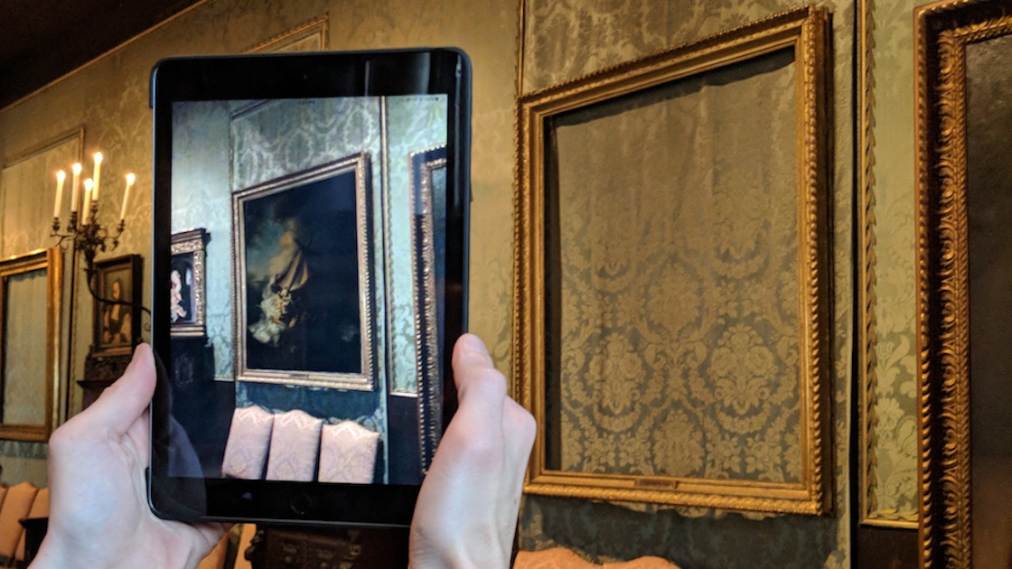 Cuseumは、ARを利用してガードナー美術館の空の額に、盗まれた絵画のイメージを再現する試みを始めている。「Hacking the Heist」と名付けられたこのプロジェクトは、アップル社のARKitプラットフォームを利用しており、アプリが入ったデバイスを空の額にかざすと、盗まれた絵が浮かび上がる。これまで、盗まれたうちの2作品、レンブラントの《ガラリアの海の嵐》と《黒装束の婦人と紳士》(1633)のARが完成しており、残りの作品についても順次対応予定とのこと。