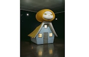 そのほかのひとつ《Dog-o-rama》(2006)は、会期中に奈良自身が金沢での滞在制作を行いながら、金沢市内外の有志から集められた古布類を使って全長7メートルの巨大な犬のぬいぐるみが出来上がっていく制作過程を紹介するもの。そして、grafと協働し制作された《Voyage of the Moon(Resting Moon) / Voyage of the Moon》(2006)は、闇夜を照らす月が屋根の上で小休止しているという、小屋と彫刻作品が融合したインスタレーション作品だ。