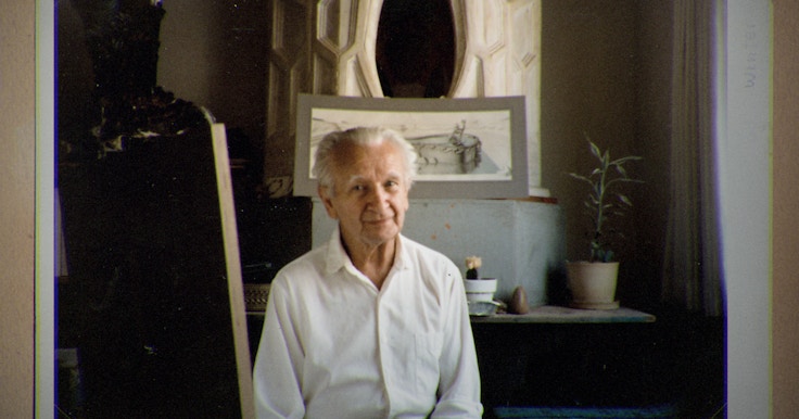 世界中の古代文明を研究し、「人類はどこから来て、どこへ行くのか」といった命題に対し、奇想天外な自論を生き生きと語る生前のインタビューはどこかユーモラスに映る。しかし、第二次世界大戦で全作品を破壊され、祖国・ポーランドとアメリカを行き来しながら、ひたむきに作品制作に取り組んだひとりの「奇人アーティスト」をかたちづくる苦悩もありありと見えてくる。