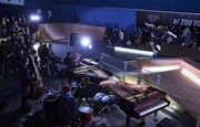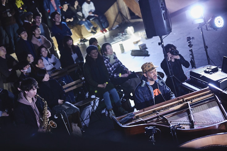 会場は足立区千住にあるMURASAKI PARK TOKYO。広いスケートパークのほぼ中央には2台のスタンウェイとドラムなどがセッティングされている。