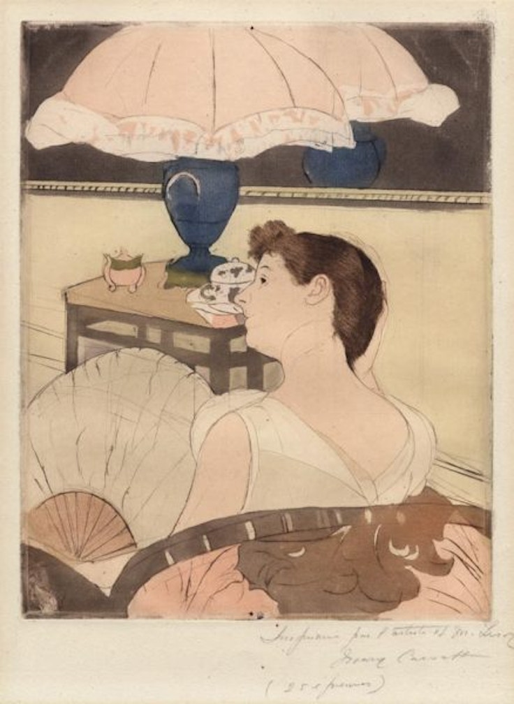 浮世絵の構図、色味の影響が感じられる。マネやボナールなども浮世絵にアイデアを得た版画を残している
