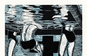 エミリー・トゥルーブラッド(1942〜)の《Between Sets》(2000)には、そんな「アーティスツ・ハンド」が存分に表現されている。この作品では、凸版印刷技巧の木版二色刷の技法が用いられており、各色の木版の準備と、色が載る部分以外を慎重に削り落とす必要がある。風変わりなモチーフと構図が一旦目を引くが、水中から見上げる水面の複雑なパターンに、表現の粋が感じられる。