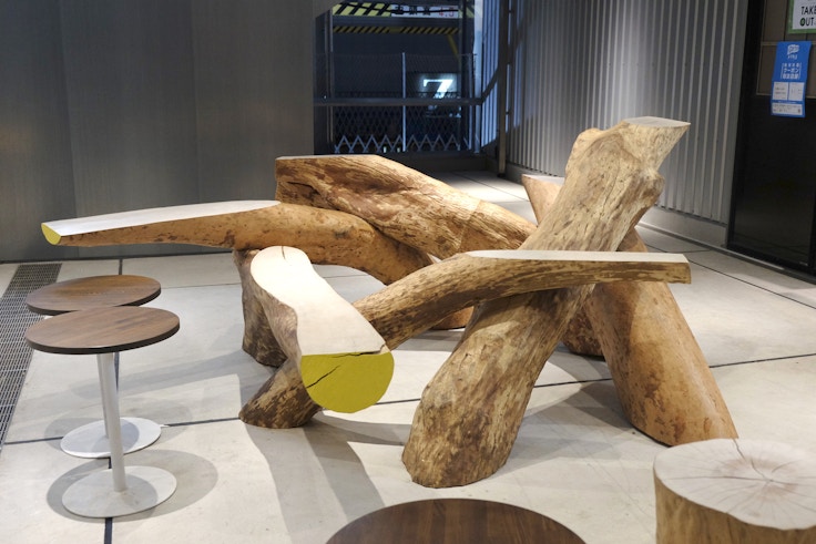 実際、「排除アート」にあたる英語としては、やはり「Art」という言葉は使われておらず、「Hostile architecture(敵対的な建築)」や「Defensive urban design(防御的なアーバン・デザイン)」などが使われているという。筆者も表現としてのアートではなく、目的をもつデザインだと思うのだが、「アート」と呼ぶことが定着したのは、日本におけるアートの受容と関係があるかもしれない。なんだかよくわからない、不思議なかたちをしたものを、とりあえず「アート」と呼ぶという風潮だ。例えば、今年オープンしたミヤシタパークには、通路に不定形のフォルムをもったベンチ、間仕切りはないが、途中に2つのリブが入るメッシュ状のベンチ、細い座板と細い天板をV字型の側面でつないだベンチ+椅子が存在するが、いずれも長居したくない、あるいは寝そべることが難しいデザインである。が、これらを紹介しているネットのレポートなどを読むかぎり、「アートがたくさん!」という風に、目に楽しいオブジェ的なベンチとして受容されているようだ。座りにくいベンチが、アートという美名のもとにカモフラージュされている。