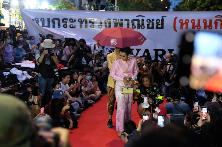 *4──このショーは、デザイナーでもある王女シリワンナワリーのブランドがファッションショーを開催する同日におこなわれた。王室予算が王女の私的な事業に流用されているとの疑惑について問いかけたかたちだ。