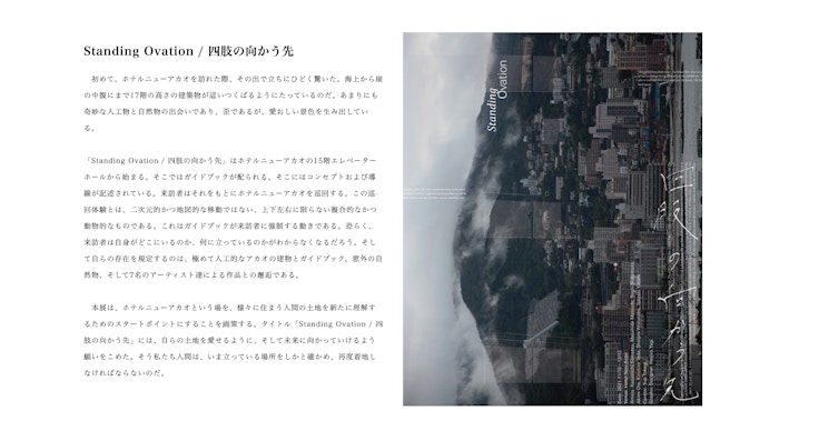 ──今日は静岡県熱海市にあるACAO SPA & RESORTとその周辺エリアを舞台に、2020年の11月から12月にかけて開催された展覧会「ATAMI ART GRANT」における展示内展示「四肢の向かう先 | Standing Ovation」を振り返るべく、同展覧会のキュレーターである髙木遊さんと出展作家の皆さんにお集まりいただきました。