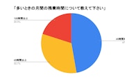 なお、上記と関連し、「展覧会担当者の業務量は全体の業務の上で配慮されていますか」という問いに対しては、70パーセント近くが「いいえ」と回答。現在の業務量についても約70パーセントが「多い」と答えている。また多いときの月の残業時間については「45時間以上」が半数を超えており、学芸員の業務が過多となっていることがわかる。