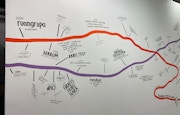 ドクメンタ15全体のインフォメーション・センター的役割を果たした「ルル・ハウス(ruruHaus)」 の地下壁面には、ルアンルパの歩みとドクメンタのプロジェクト進行を示すタイムラインが書かれていた。ここでも紫色のラインの起点は1998年に権威主義体制が崩壊したことに置かれている。
