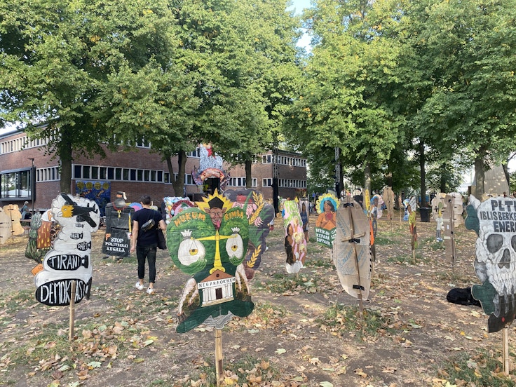 いっぽうで日本でも幾度か報道されているように、本展は会期前から「反ユダヤ主義」疑惑で揺れた。ドイツ国内では、アートメディアに限らず一般メディアでもこの問題が連日盛んに報道された(*1)。本稿で紹介する「タリン・パディ(Taring Padi)」(*2)も、その矢面に立たされたコレクティブのひとつである(*3)。