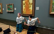 ロンドン時間の10月14日午前、環境活動団体「Just Stop Oil」のメンバーが、ゴッホの《ひまわり》に対しトマトスープと見られる赤色の液体を投げつけるという騒動を巻き起こした。作品そのものへの被害はなかったものの、以降、環境保護を名目とした活動家による美術館襲撃事件がヨーロッパを中心に頻発するようになる。