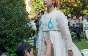 そして「市民の手で設立された『戦争と女性の人権博物館』と『植民地歴史博物館』という2つの場をつなげ、関東大震災をめぐる記憶文化(過去に関する社会の集団的知識)を現代アートによって提示」しようとしたという。オープニングで繰り広げられた、在日コリアン3世ハ・ジョンナムによる犠牲者を追悼する白装束姿のパフォーマンスには、民衆美術のフェミニスト作家チョン・ジョンヨプも加わり、観客を釘付けにした。
