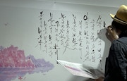 ソウル展「境界で」(2023年6月7日~17日、ファイン・ペーパーギャラリー)では、2014年の中国での展示開催直前に公安に押収された作品《線を越えて》(2011)を取り戻し再展示、そのオープニング・パフォーマンスでは自作の山水画《春の江山》(2020)に「右から南の国歌を、左から北の国歌を」書いた。朝鮮特有の書体で記された2つの国の歌は画面で合わさって、まるでひとつの叙事詩のようだ。