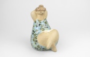 リサとヨハンナ・ラーソンによる「マイキー」のイラスト入りのTシャツや文具類など幅広い商品群の存在だけが人気の理由ではない。1954年から1980年の26年間にグスタフスベリ磁器工房で製造されたヴィンテージやケラミーク・ステュディオンで現在も製造が続けられている量産品は、誰もが手元に置きたくなるように愛らしく、温かみのあるフォルムをしている。多くの人々の心を掴むリサ・ラーソンの作品特徴のひとつは、東洋的な釉薬と丸みを帯びたフォルムであろう。地味な色の釉薬であっても、印象は「ノスタルジー」ではない。フィギュアや動物作品は、石膏型による量産に耐える形状に仕上げる必要があるため、デザイナーと製造の職人側とのせめぎあいのなかで装飾と造形が吟味されている。リサの作品には、あえて施釉することなく土の部分を見せる作品も多い。艶のある釉薬と土色の部分は、対照を成し、土の溌溂とした生命力を感じさせる。それは、私たちが現代作家の多彩な陶芸手法のなかで見落としがちな、陶芸ゆえの土という素材を生かした魅力といえよう。