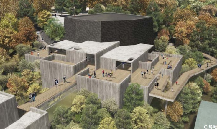 版画美術館とは2階のブリッジで連結し一体的に整備。2館連結により館内を介した新たな動線をつくり出し、高低差がある園内の利便性や街中との回遊性の改善を図る。版画美術館は1階に導入スペースの「アート・出会いの広場」を新設し、ワークショップや作品展示、フォーマンスなど様々なアート体験を提供。現在1階にある版画工房とアトリエ、喫茶室は同館西側に新築するアート体験棟に移る予定だ。総事業費は、計約43億8000万円を見込んでいる(アート体験棟を除く)。