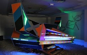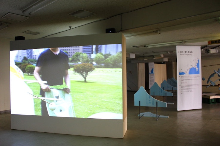 アマゾン川周辺地域でDJブースのように使われるという「音の船」、ナーヴェを展示しているのは、ブラジル生まれのリビジウンガ・カルドーゾ(別名:レアンドロ・ネレフ)。現地にはナーヴェのデザイナーも存在し、様々な形態のものがつくられているという。今回作家が行ったプロジェクトは、自国の文化であるナーヴェを、地球の反対側に位置する日本まで「旅」をさせること。最終的には物々交換によって訪れた人に譲り渡す計画で、現在交換相手を募集中だ。会期中は、設置された装置でサウンドを自由に操作したり、ナーヴェに乗って写真を撮ったりして楽しむことができる。