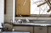 リオ・デ・ジャネイロを拠点に、90年代半ばから、自ら「イメージ」と呼ぶ一連の作品を生み出してきたラウラ・リマ。今回は水上ビルの1軒分を100羽の鳥のための棲家に変容させた。台所やトイレ、押入れなど建物の至るところに鳥が羽を休めるための装置が設置してあり、鳥は建物内を自由に行き交うことができる。鑑賞者は本来自分たち人間が住むはずの場所に、異質な存在として入っていくことになる。