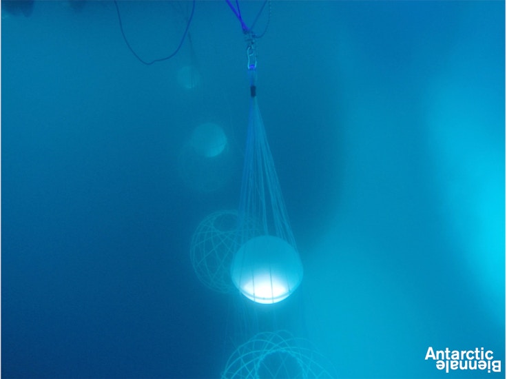 アレクサンドル・ポノマリョフは、《南極のアルベドの錬金術(あるいは洗う蒼い月)》を制作。光の照り返しを受ける天体を表す3つの巨大な球体を、ボートから海に沈めた。海水で洗われるこの球体は、南極の美によって浄化される人間の象徴であるという。この作品を直接見ることができたのは、ダイバーとクジラや魚だけだ。「南極ビエンナーレによって、自然界に美術という贈り物をしたい」というポノマリョフの理念を表す本作品は、人間が自然にどのように関わることができるのかという本質的な問いへの、芸術によるアプローチである。