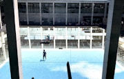 いっぽうの原は、「池が建物の中心であり、ポテンシャルがあると思っていた」としながら、「いつかこの池を仕上げようと思っていた」のだという。「この人なら、と思いレアンドロにお願いした。上空から見ると、建物の中にもうひとつ建築が重なっています。ミケランジェロがシステーナ礼拝堂の天井画の中に建築も描きましたが、この作品はそれに匹敵しますね」。