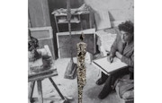 同展に出品されているもっとも初期の作品である《棒に支えられた頭部》(1947)は、ある2人の人物の死の追憶から生まれた。1946年12月、雑誌『ラビリンス』に寄せた「夢・スフィンクス楼・Tの死」という謎めいた文章のなかでジャコメッティは、オランダ人の隣人Tと、かつてチロル地方を共に旅したヴァン・Mの死について克明に描写しているが、死に際して彼らの頭はのけぞり、口が開いていたという点で共通している。そして、Tの死を目の当たりにして抱いた、無に等しいオブジェとなった頭への恐怖を、ジャコメッティは生きている人々に対しても見出す。生きていると同時に死んでいる対象、時間や空間との関係を失い、絶対的な不動性のなかで凍りついた人間や物、それこそ、ジャコメッティが苦心しながらデッサンや彫刻でとらえようとした存在の核心である。