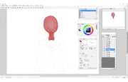 ベースの色ができあがったところで、次は顔を中心に影を描いて立体感を出していきます。あいかわらずデータ保存時の、パソコンの基本操作はたどたどしい上田。それでも、openCanvasの使い勝手の良さと上田の飲み込みの早さには驚かされます。