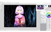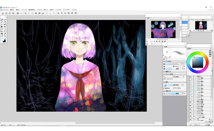 藤:夜の森という設定も、描き方がいくつか考えられますよね。たとえば、月明かりを想定して木のシルエットを黒で描いて、後ろのほうを明るくするとか。今回は、光るシャボン玉を人物の周囲に描くので、手前が明るくて、奥に向かって段々と木が闇に溶けていくような、ちょっと神秘的な雰囲気が出せるといいですよね。