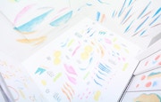 「エレベーター部門」で入賞した照屋美優は、色鉛筆による抽象作品を手がけている。小品を組み合わせて構成したという本作は、描き進めながら雨粒や月、太陽など自然のモチーフにイメージを重ねるようにして制作された。日頃から「作品の中に入り込むような気持ち」で描くという照屋は、これまでも作品を拡大印刷したり、空間に溶け込ませるように展示して、その感覚を再現してきた。エレベーターでの展示で目指したのは「癒しの空間」。手描きの風合いを活かし、温かく優しい雰囲気の空間に仕上げている。