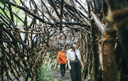 ピザとコーヒーでお腹が満たされたら、午後も再びアート巡り。大町温泉郷にある森林劇場を舞台にした作品や、パワースポットとも称される仏崎観音寺近くの作品などを鑑賞。北アルプス国際芸術祭のテーマでもある「水、木、土、空。」にまつわる作品世界を堪能した。