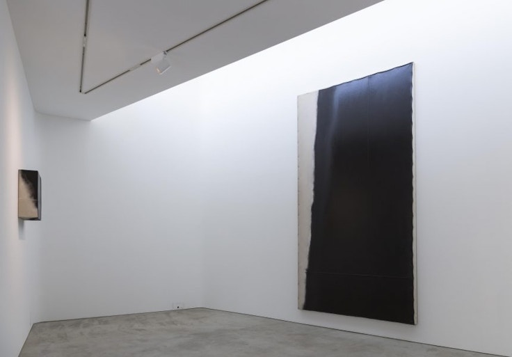 榎倉康二の《インスタレーション(oil on paper)》です。薄い紙を何枚かつなぎあわせたこの作品は、作品としてとても力強く、染み込ませたオイルが時間とともに違う顔を見ていくところが気に入っています。写真は、旧西ドイツのアーヘン市立美術館での展示風景です。