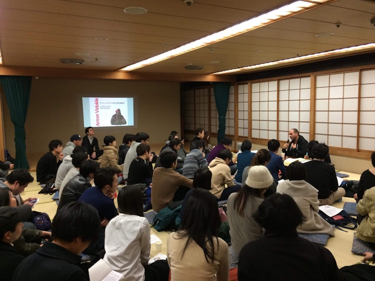 世界の現代美術を牽引するプラットフォーム「e-flux」の創始者アントン・ヴィドクルが、みずからの出自であるロシアに立ち返った映像作品《ロシア宇宙主義》三部作が、ギャラリー・アサクサで公開された。すべてのかつて生きた人類を科学技術により復活させよ、そのあかつきには手狭になる地球を離れて宇宙へ飛び立て――このような奇矯なアイデアを唱えた宗教哲学者フョードロフに発する思想「宇宙主義(コスミズム)」。ロシア・ロケット工学の父ツィオルコフスキーもその影響下にあった。なぜいま宇宙主義なのか、e-fluxの活動との関係は――次回作のロケハンのため来日したヴィドクルに聞いた。