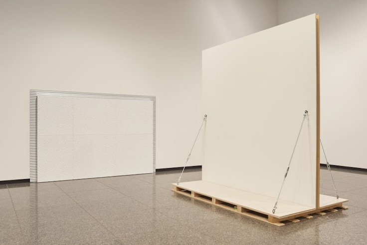 2017年の原田裕規「作者不詳 #1」展では、「作者不詳」と「平面」を主題に、2点1組の作品を展示(撮影=原田裕規)