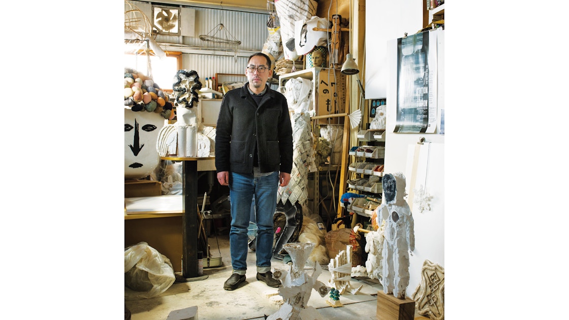 一貫して、人体がモチーフの彫刻作品を手がけてきた作家の中野浩二。木彫を経て、現在は石膏を素材に人体像を制作している。「かたまりを削り内側に迫るのではなく、小さな点が外側に広がり育っていくのが、自分のなかでの人間のイメージ。石膏はそんなイメージを実現するのに合っていると思いました」。