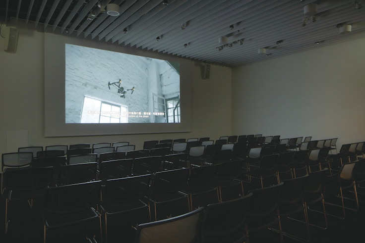 森美術館(東京)で開催された映像プログラム「MAMスクリーン009」では、許の映像作品5作が上映された。いずれも10分前後の短編だが、そのうちの1作である《ドローン、ヒナコウモリ、故人たちの証言》(2017)は、上映のたびに、3分40秒から8分40秒のあいだでランダムに上映時間の長さが変動するものだ。