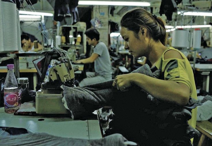 王の作品には、15時間、9時間など長時間のものも少なくない。今回、上映されたもうひとつの作品『15Hours』の上映時間は、作品タイトルの通り15時間と50分。浙江省湖州市の縫製工場で働く30万人の移民労働者の午前8時から午後11時までの15時間の生活を追った作品だ。ミシンの前で黙々と作業を続ける労働者たちの姿と、「ブーン」というミシン音が聞こえるだけという、非常に地味で単調なシーンが続く。それこそが、30万人の労働者のリアルなのだ。